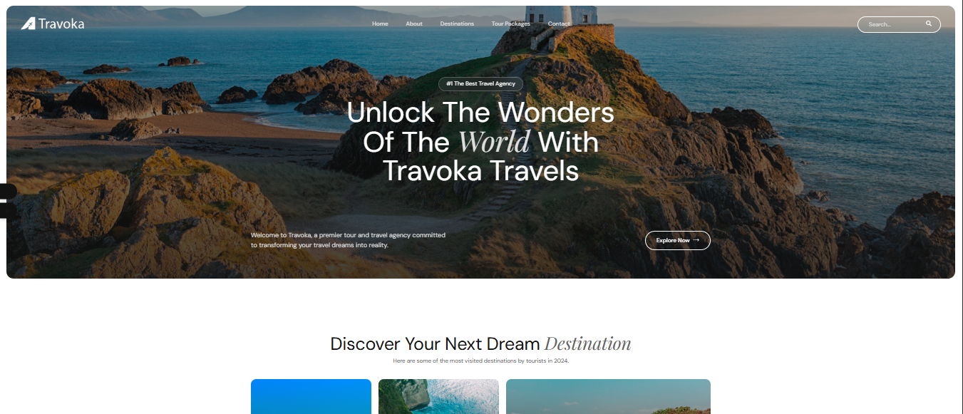 Template Website Travel Travoka dari Dagang Digital adalah contoh desain modern dan responsif yang cocok untuk agen travel atau biro perjalanan yang ingin memperkuat identitas digital dan memperluas jangkauan pelanggan.