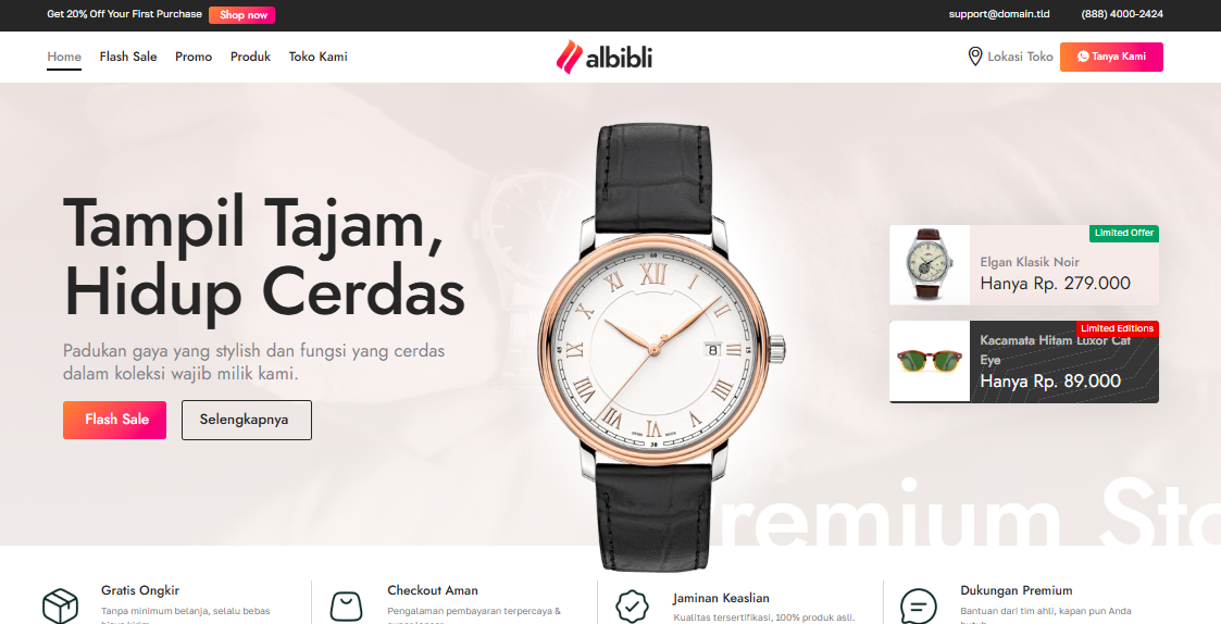 Lihat contoh template website toko online dari Dagang Digital, desain profesional, responsif, dan siap pakai untuk bisnis e-commerce Anda.