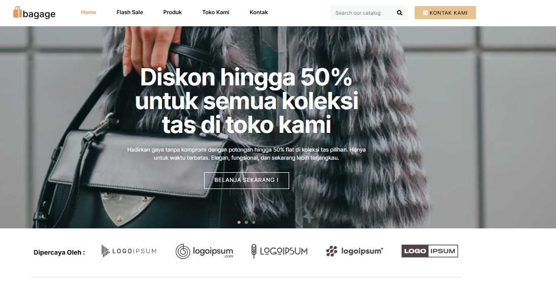 Lihat contoh template website toko tas dari Dagang Digital, desain modern, responsif, dan siap pakai untuk membantu memajukan penjualan tas secara online.
