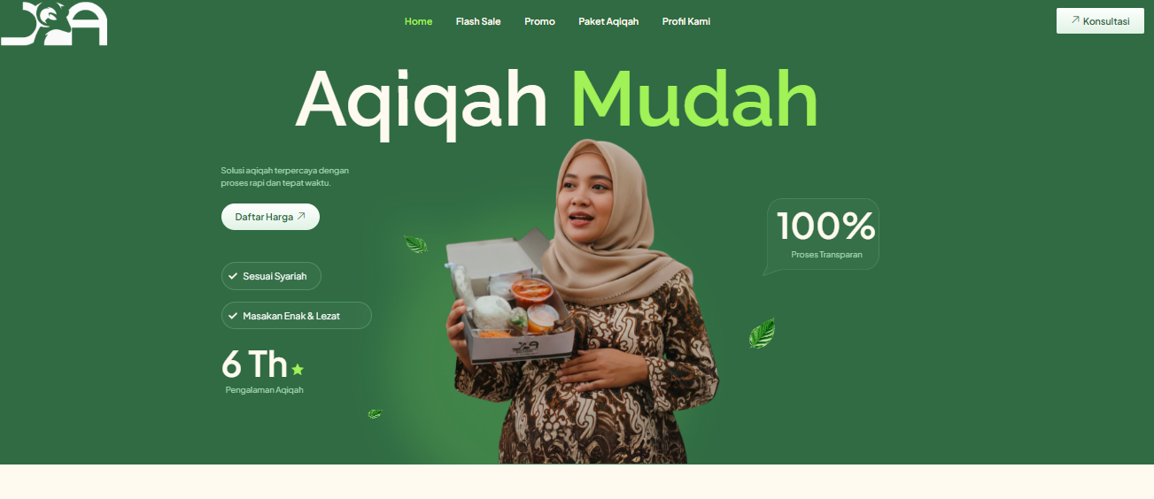 Lihat contoh template website layanan aqiqah dari Dagang Digital, desain profesional, responsif, dan siap pakai untuk memperkuat kehadiran online bisnis layanan Anda.