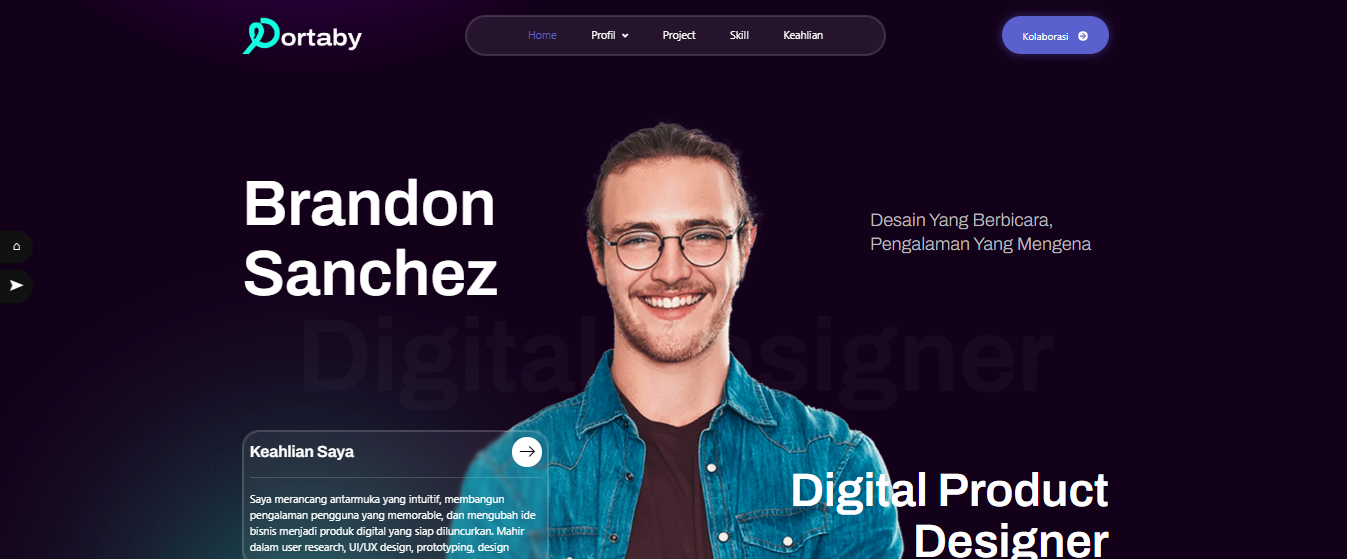 Lihat contoh template website portofolio dari Dagang Digital, desain visual modern dan responsif untuk menampilkan karya profesional secara online.