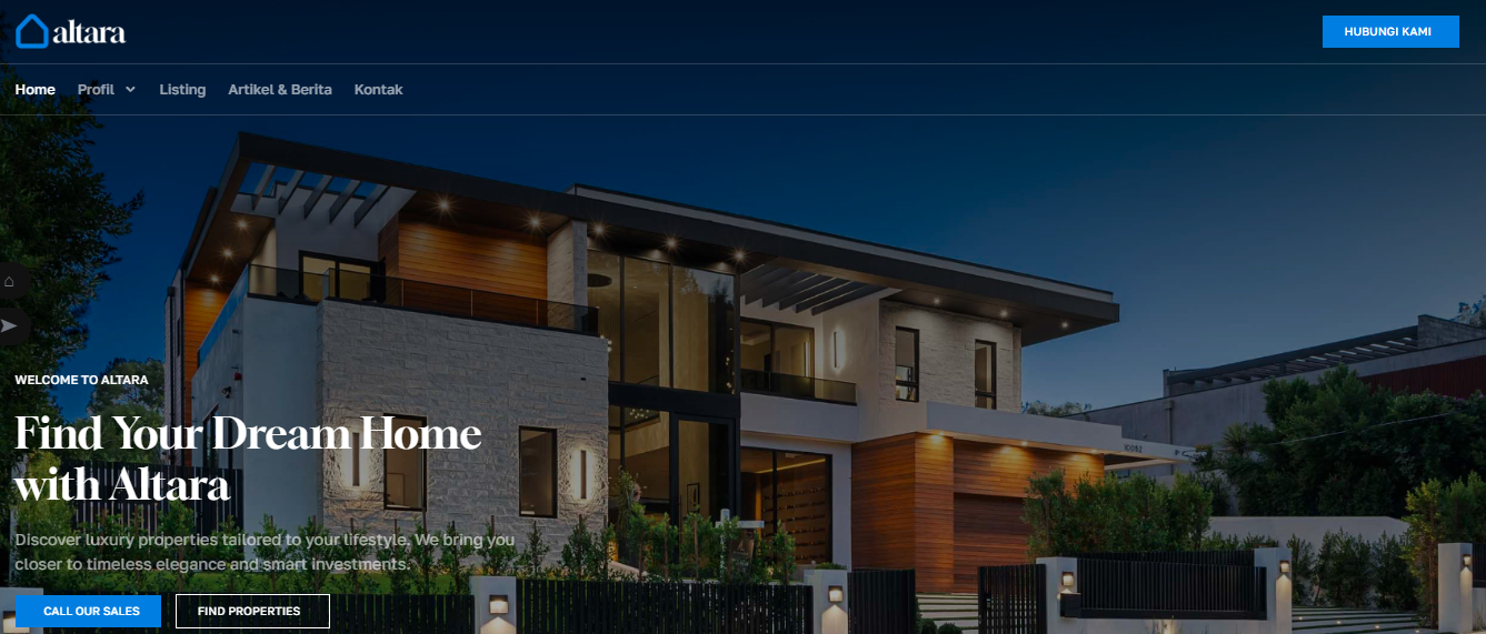 Butuh website properti yang profesional dan tampil menarik di segala perangkat? Template Real Estate Altara dari Dagang Digital hadir dengan desain responsif dan struktur informasi yang efektif untuk membantu memaksimalkan promosi listing properti Anda.