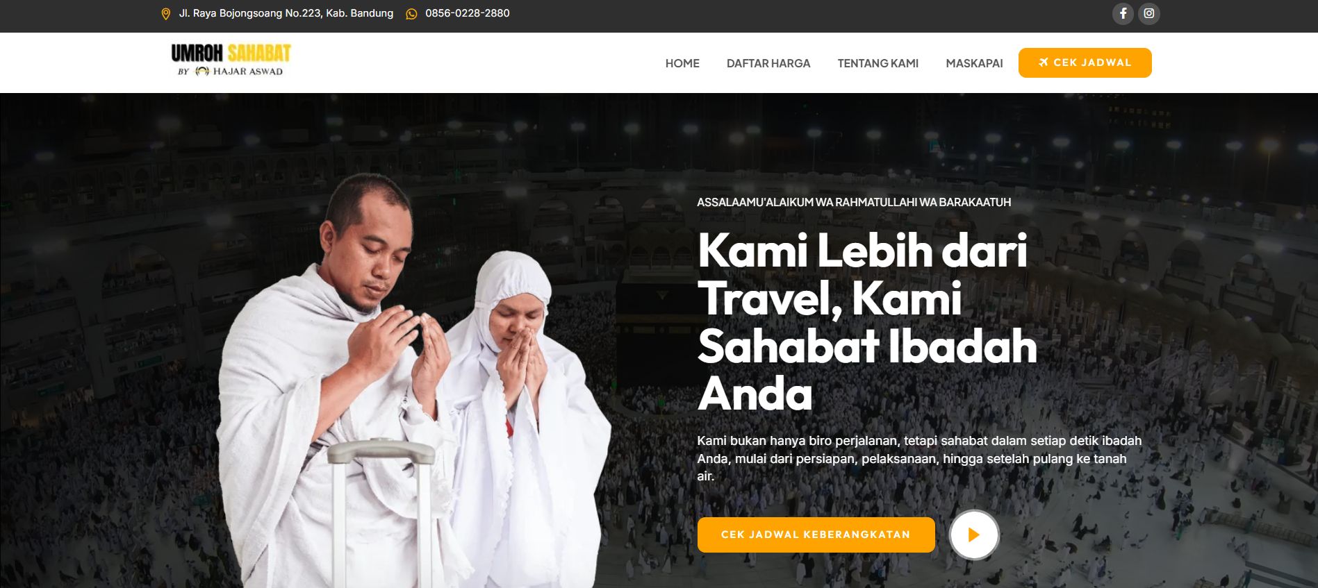 Website Umroh Sahabat yang dirancang profesional untuk menampilkan paket dan layanan travel umroh secara terstruktur, responsif, dan SEO friendly guna meningkatkan kredibilitas dan minat calon jamaah.
